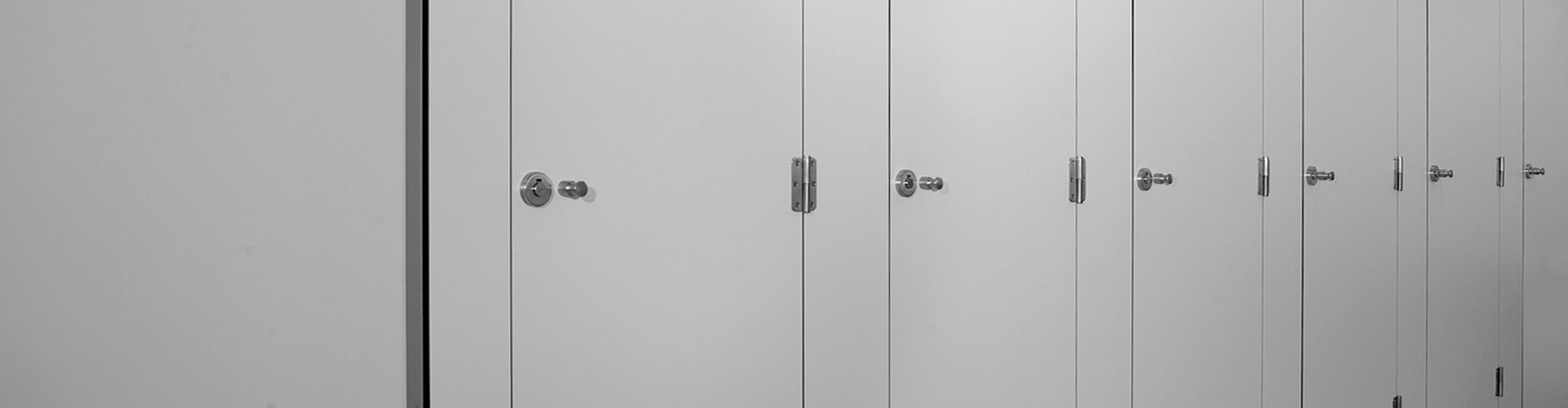 Cabines sanitárias em Compacto Fenólico - painéis fixos e móveis, de fecho e manobra em placas de resinas fenólicas.